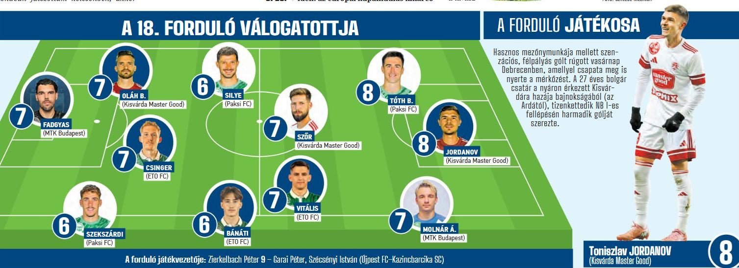 Toniszlav Jordanov tarolt – a forduló válogatottját rendszeresen kijelölő fórumok mindegyikén bekerült a 18. játéknap válogatottjába, a Nemzeti Sportnál ő lett a forduló játékosa is, 8-as osztályzattal és ezzel az indoklással: „Hasznos mezőnymunkája mellett szenzációs, félpályás gólt rúgott Debrecenben, amellyel csapata meg is nyerte a mérkőzést. A 27 éves bolgár csatár a nyáron érkezett Kisvárdára hazája bajnokságából (az Ardától), tizenkettedik NB I-es fellépésén a harmadik gólját szerezte.” A sportnapilap további két, egyaránt 7-es osztályzattal jutalmazott játékosunkat, Oláh Bálintot és Szőr Leventét is a játéknap legjobbjai közé jelölte.
