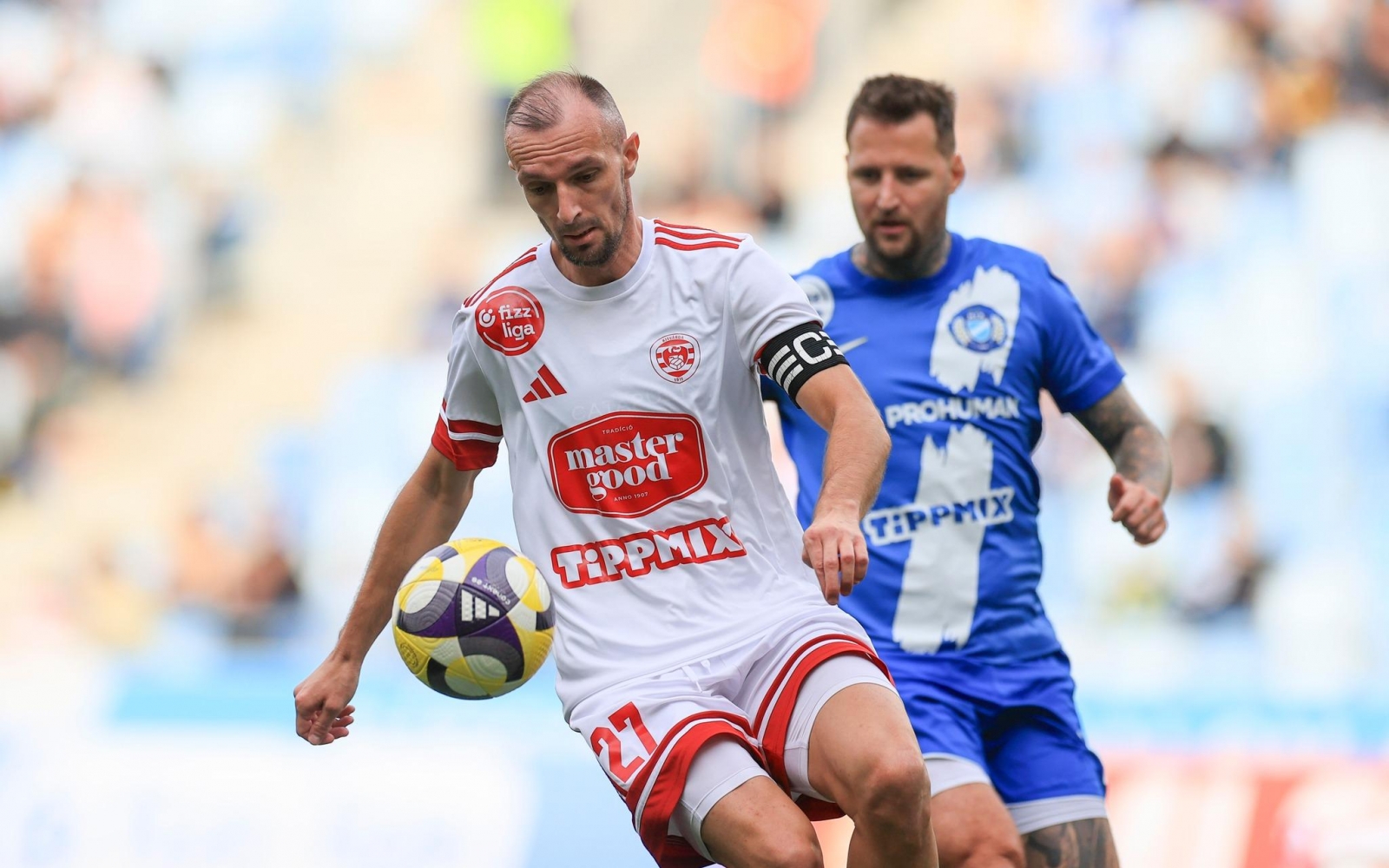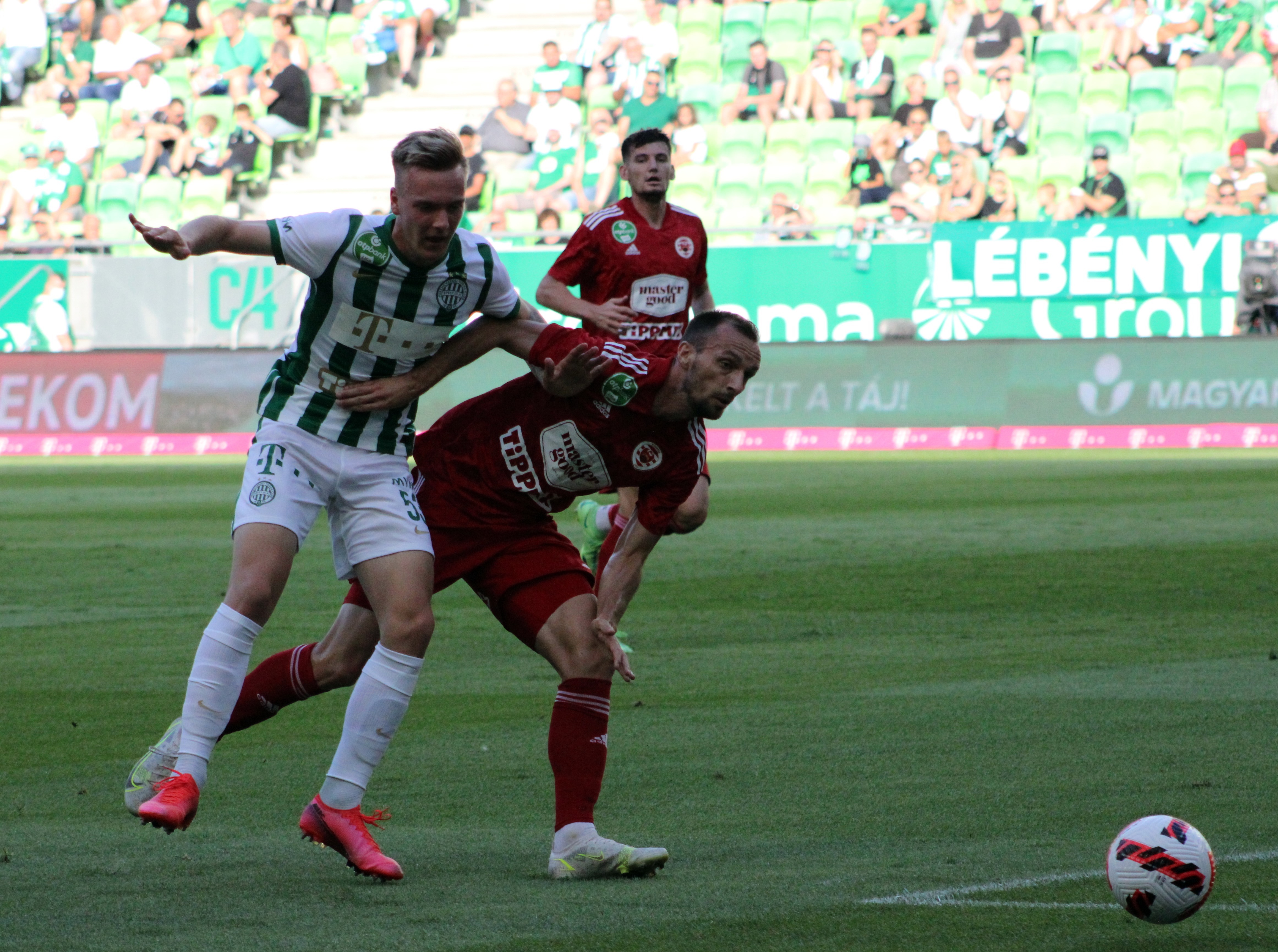 A borítófotónkon az eddigi utolsó, 99. NB I-es bajnokiján Jasmin Mesanovic, immár csapatkapitányként, ez a kép pedig az első kisvárdai színekben játszott bajnokiján készült, 2021. július 31-én, a Ferencváros otthonában 2–1-re megnyert mérkőzésen