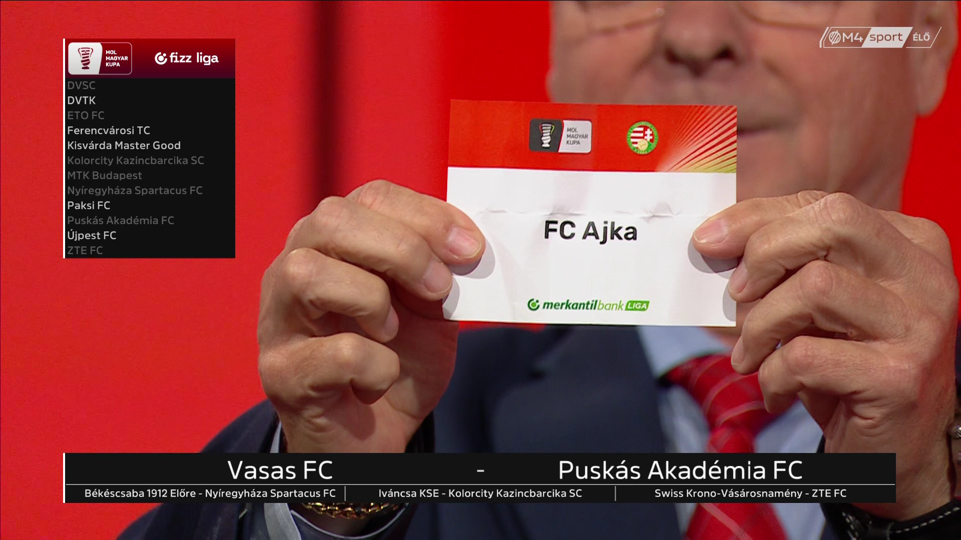 Megtartották a Mol Magyar Kupa országos főtábla harmadik fordulójának sorsolását az M4 Sport élő adásában, ahol kiderült, hogy a Kisvárda Master Good az NB II-ben szereplő Ajka vendége lesz.