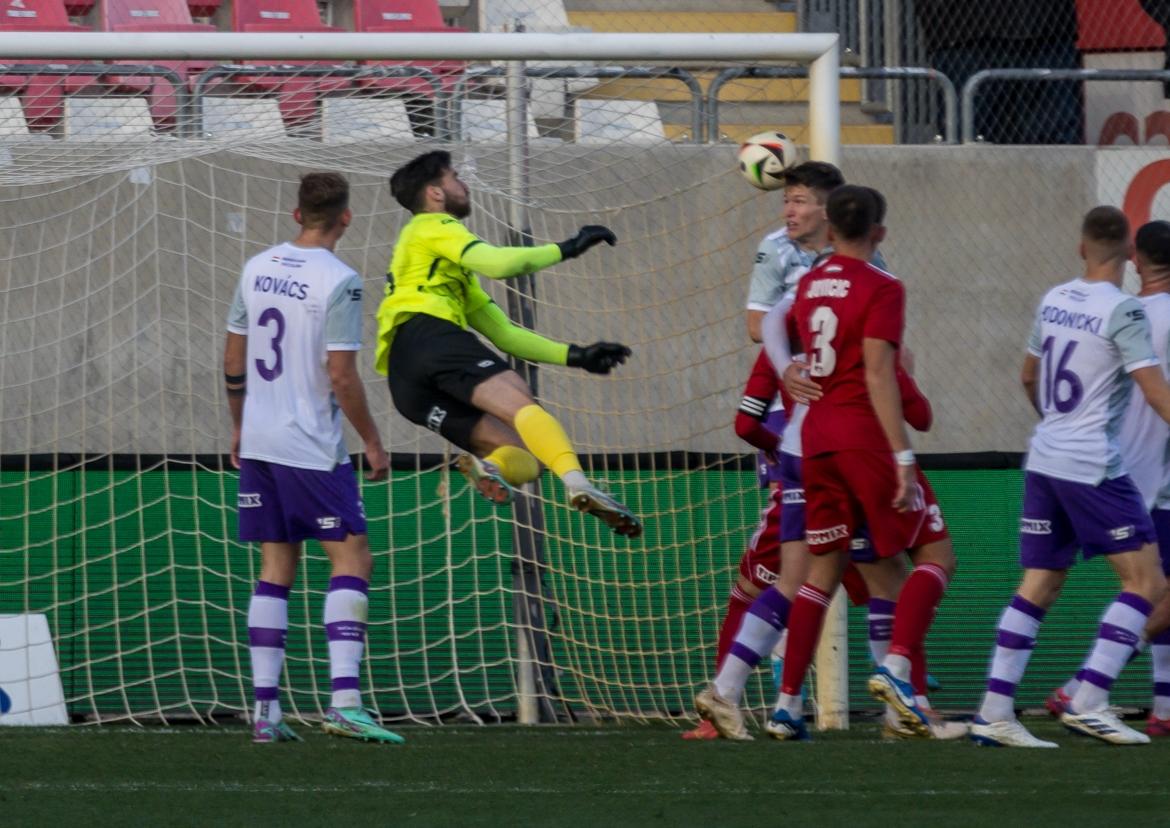 A borítófotón: Az őszi mérkőzésen Molnár Gábor látványos sarkazásár követően így jutott a békéscsabai kapuba a labda