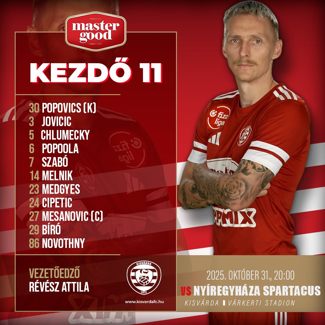 Először tagja a kisvárdai kezdő tizenegynek Medgyes Sinan, aki Soltész Dominikot helyettesíti a bal szélen. A múlt héthez képest változás még, hogy Szabó Szilárd is bekerült a csapatba.